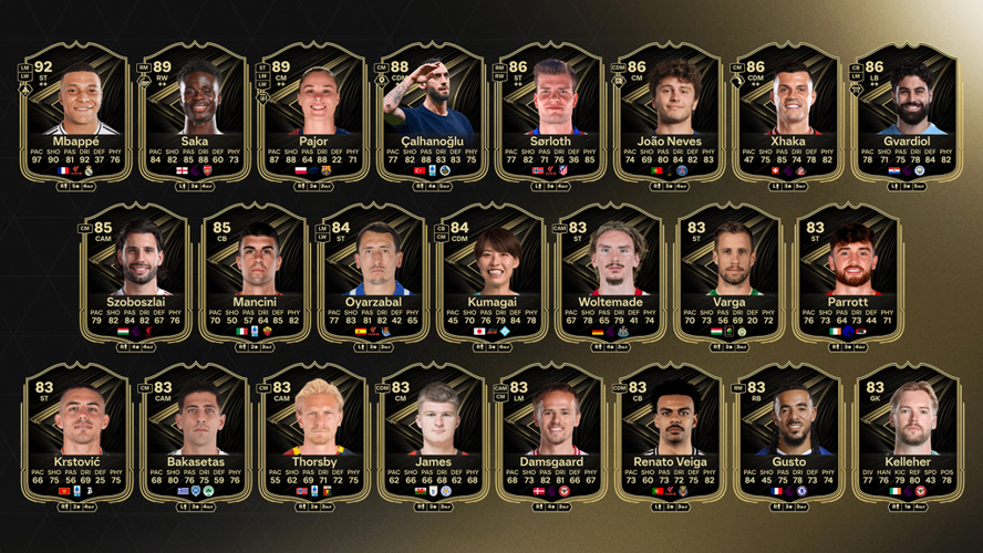 Dennoch konnten sich mehrere Spieler in den Qualifikationsspielen besonders hervortun. Topstars wie Mbappé, Haaland und Kane glänzten jeweils mit zwei Toren und wurden als Man of the Match ausgezeichnet. Khadija Shaw überzeugte ebenfalls mit einem Tor, einer Vorlage und ihrer Performance, die Manchester City zum Sieg führte. Besonders spannend ist die Entscheidung zwischen Bruno Fernandes und João Neves, die beide im gleichen Spiel gegen Armenien jeweils drei Tore erzielten. Normalerweise erhält pro Spiel nur ein Spieler eine TOTW-Karte, aber in diesem Fall könnten beide eine Auszeichnung verdienen. Ähnlich beeindruckend war Troy Parrott, der im Spiel gegen Ungarn drei Tore erzielte. Auch Spieler wie Andrija Živković, Julian Ryerson, Malo Gusto, Mikel Oyarzabal, Alexander Sorloth und Nick Woltemade, die jeweils zwei Tore erzielten, stehen hoch im Kurs.