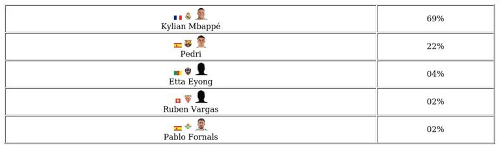 Fans can participate in selecting their favorite La Liga player for the month.